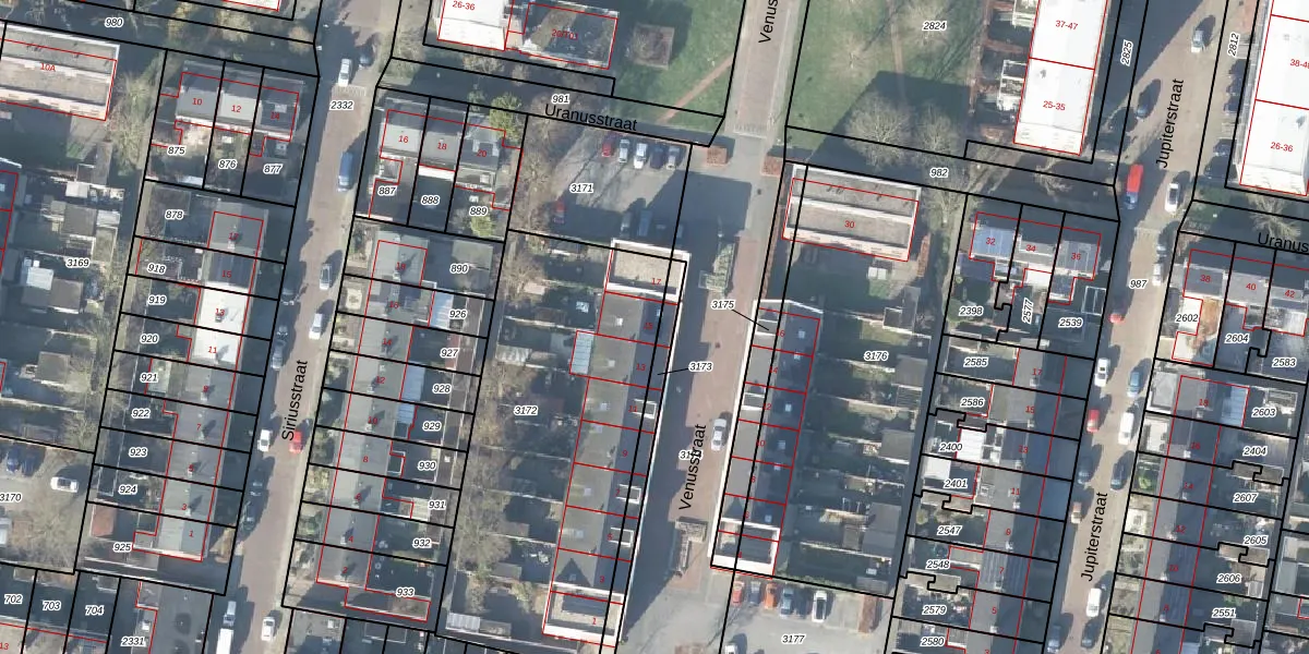 Venusstraat 15 is gelegen op kadastraal perceel HGL01P3172. Deze kadastrale aanduiding is uniek en wordt gebruikt door het Kadaster om eigendomsrechten en andere zakelijke rechten vast te leggen. Het perceel maakt onderdeel uit van de kadastrale gemeente Hengelo Overijssel.