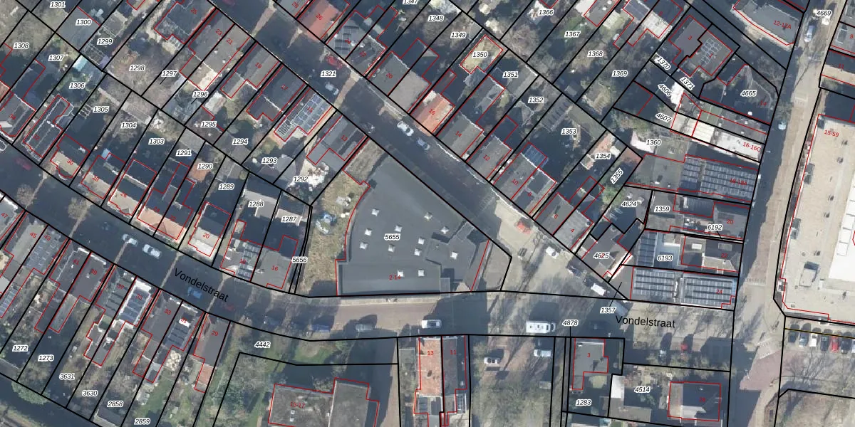 Het perceel waarop Vondelstraat 2-C staat heeft een oppervlakte van 1175 m². Dit is een zeer groot perceel. De perceeloppervlakte wordt geregistreerd door het Kadaster. Gedetailleerde informatie over de maten van dit perceel kunt u vinden in het rapport Kadastrale kaart met maatvoering van Vondelstraat 2-C.