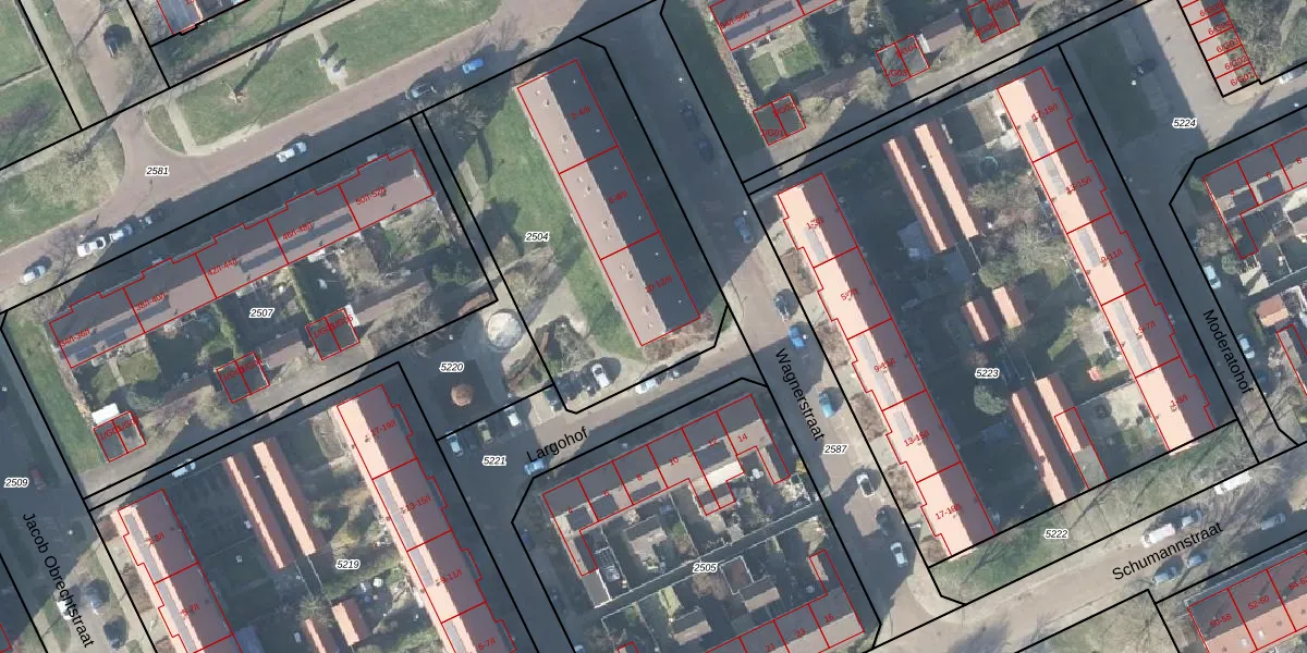 Het perceel waarop Wagnerstraat 12-II staat heeft een oppervlakte van 1505 m². Dit is een zeer groot perceel. De perceeloppervlakte wordt geregistreerd door het Kadaster. Gedetailleerde informatie over de maten van dit perceel kunt u vinden in het rapport Kadastrale kaart met maatvoering van Wagnerstraat 12-II.