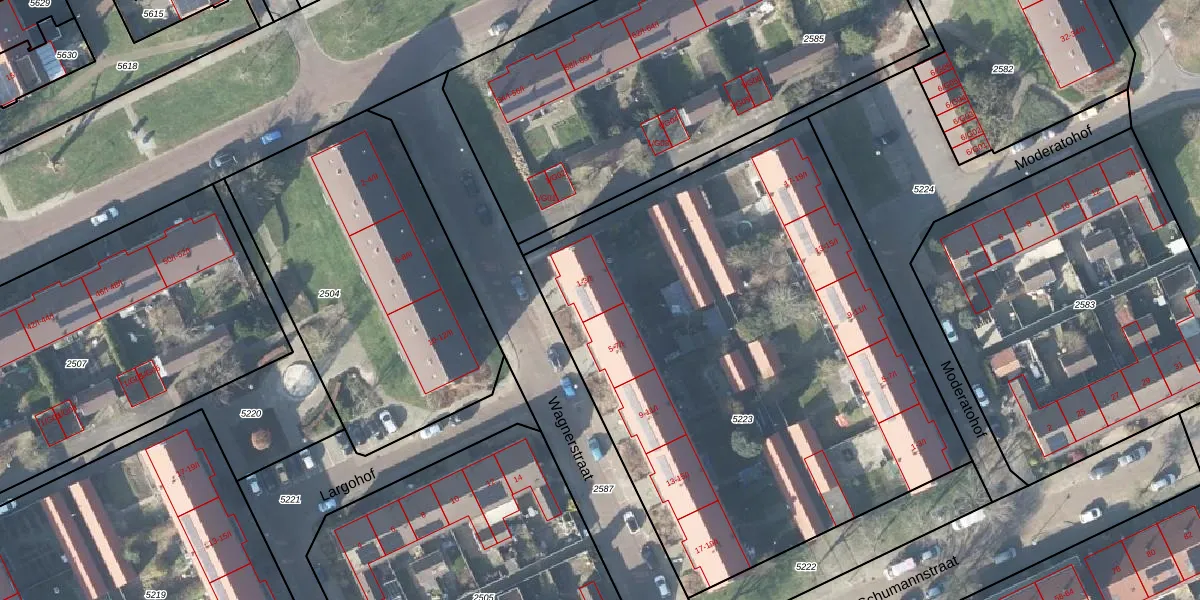 Het perceel waarop Wagnerstraat 3-I staat heeft een oppervlakte van 3349 m². Dit is een zeer groot perceel. De perceeloppervlakte wordt geregistreerd door het Kadaster. Gedetailleerde informatie over de maten van dit perceel kunt u vinden in het rapport Kadastrale kaart met maatvoering van Wagnerstraat 3-I.
