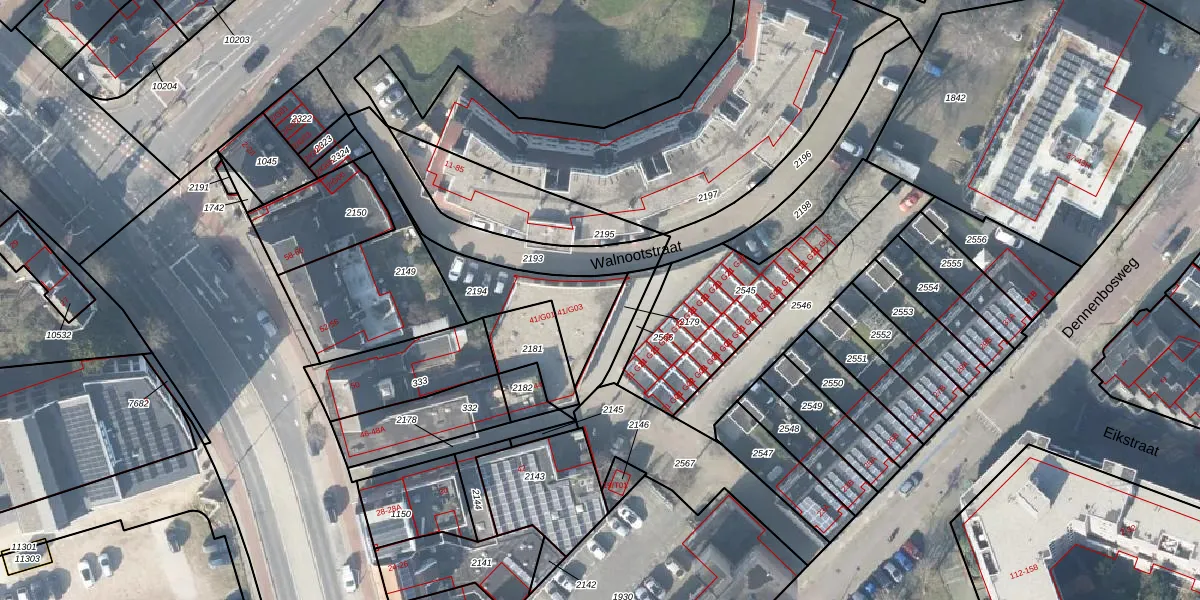 Walnootstraat 41-G03 is gelegen op kadastraal perceel HGL01R2194. Deze kadastrale aanduiding is uniek en wordt gebruikt door het Kadaster om eigendomsrechten en andere zakelijke rechten vast te leggen. Het perceel maakt onderdeel uit van de kadastrale gemeente Hengelo Overijssel.