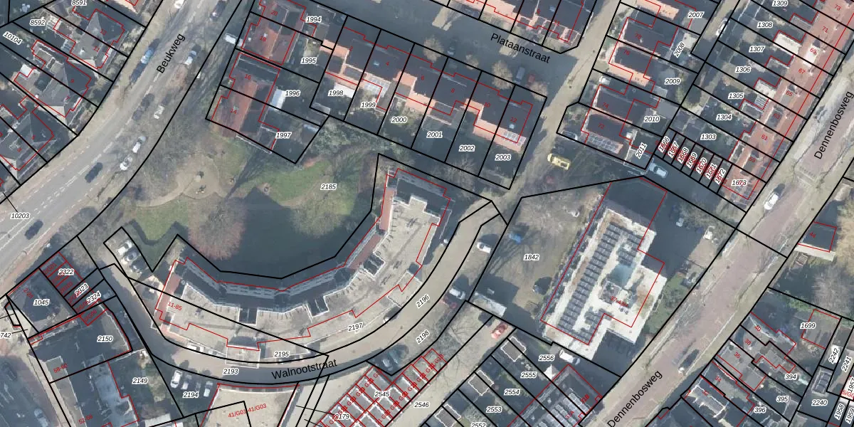 Het perceel waarop Walnootstraat 85 staat heeft een oppervlakte van 1506 m². Dit is een zeer groot perceel. De perceeloppervlakte wordt geregistreerd door het Kadaster. Gedetailleerde informatie over de maten van dit perceel kunt u vinden in het rapport Kadastrale kaart met maatvoering van Walnootstraat 85.