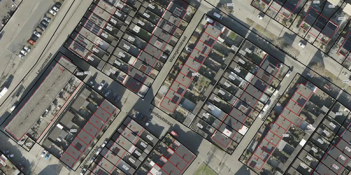 Het perceel waarop Waregemstraat 15 staat heeft een oppervlakte van 1596 m². Dit is een zeer groot perceel. De perceeloppervlakte wordt geregistreerd door het Kadaster. Gedetailleerde informatie over de maten van dit perceel kunt u vinden in het rapport Kadastrale kaart met maatvoering van Waregemstraat 15.