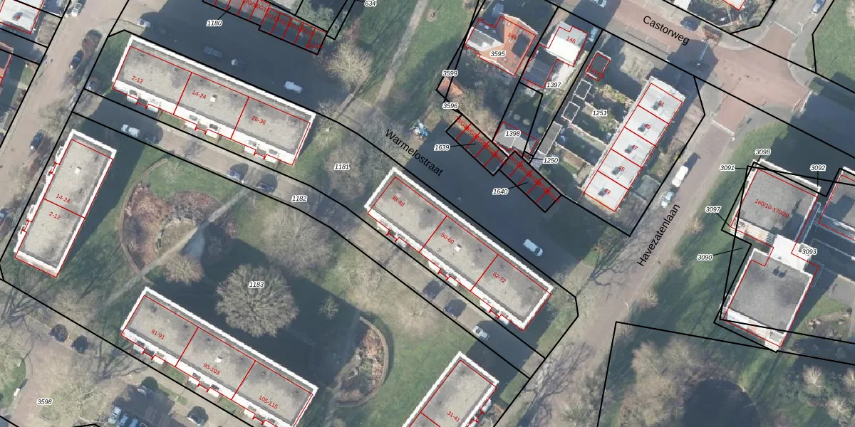 Het perceel waarop Warmelostraat 40 staat heeft een oppervlakte van 2050 m². Dit is een zeer groot perceel. De perceeloppervlakte wordt geregistreerd door het Kadaster. Gedetailleerde informatie over de maten van dit perceel kunt u vinden in het rapport Kadastrale kaart met maatvoering van Warmelostraat 40.