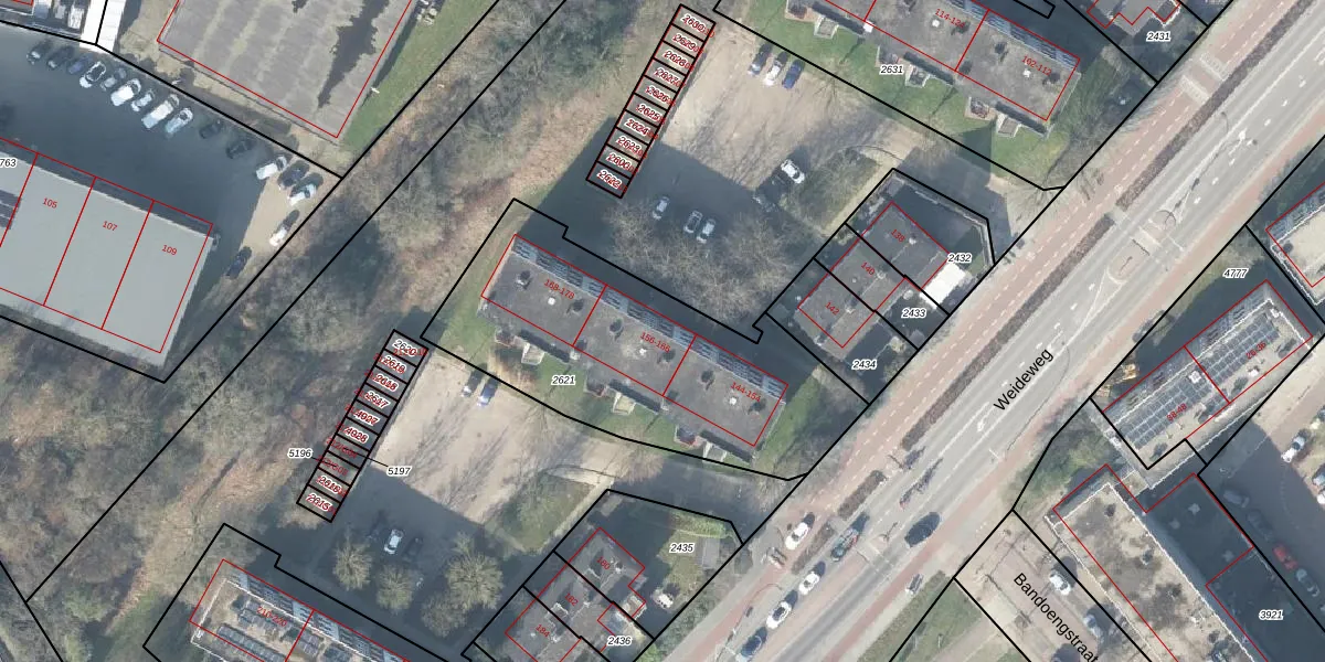 Weideweg 156 is gelegen op kadastraal perceel HGL01A2621. Deze kadastrale aanduiding is uniek en wordt gebruikt door het Kadaster om eigendomsrechten en andere zakelijke rechten vast te leggen. Het perceel maakt onderdeel uit van de kadastrale gemeente Hengelo Overijssel.