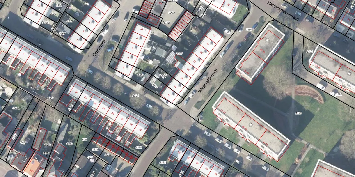 Weleveldstraat 21 is gelegen op kadastraal perceel HGL01P3327. Deze kadastrale aanduiding is uniek en wordt gebruikt door het Kadaster om eigendomsrechten en andere zakelijke rechten vast te leggen. Het perceel maakt onderdeel uit van de kadastrale gemeente Hengelo Overijssel.