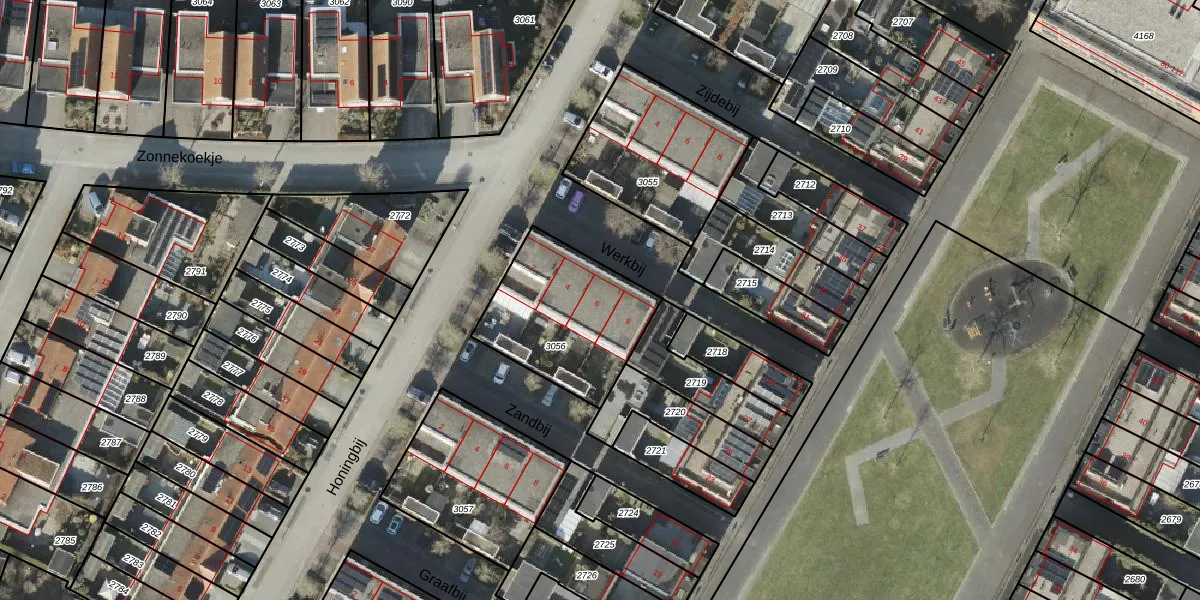 Het perceel waarop Werkbij 6 staat heeft een oppervlakte van 523 m². Dit is een groot perceel. De perceeloppervlakte wordt geregistreerd door het Kadaster. Gedetailleerde informatie over de maten van dit perceel kunt u vinden in het rapport Kadastrale kaart met maatvoering van Werkbij 6.