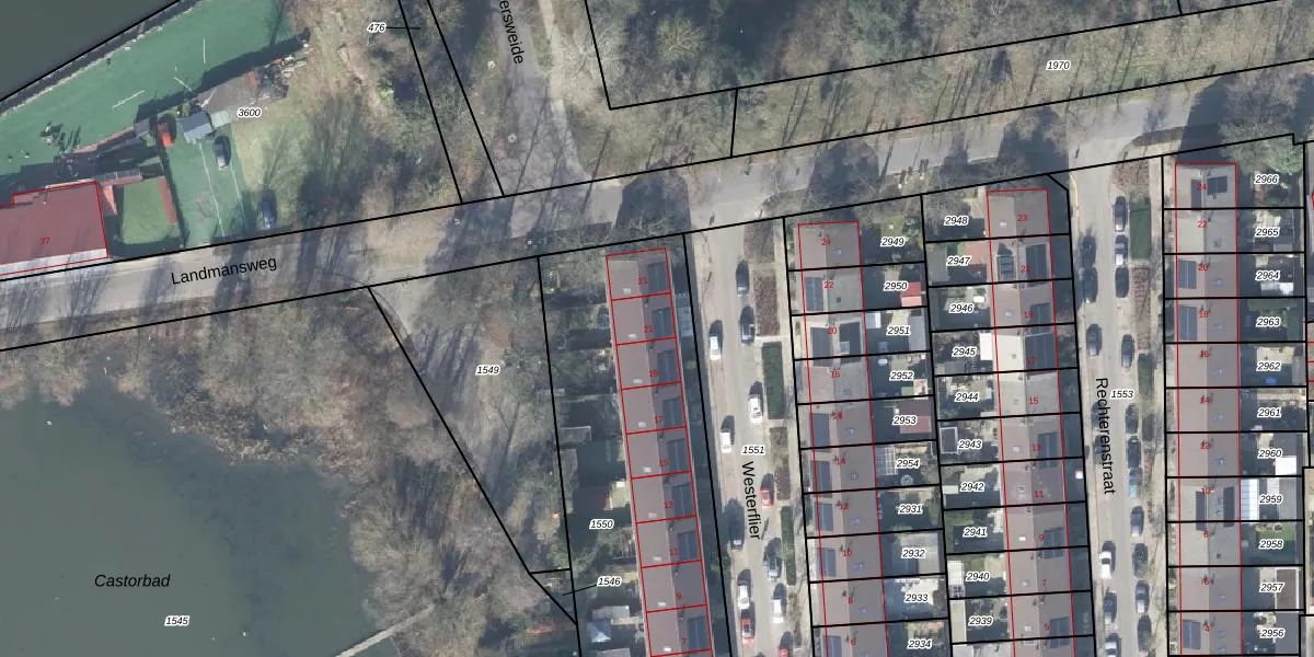 Het perceel waarop Westerflier 21 staat heeft een oppervlakte van 1950 m². Dit is een zeer groot perceel. De perceeloppervlakte wordt geregistreerd door het Kadaster. Gedetailleerde informatie over de maten van dit perceel kunt u vinden in het rapport Kadastrale kaart met maatvoering van Westerflier 21.