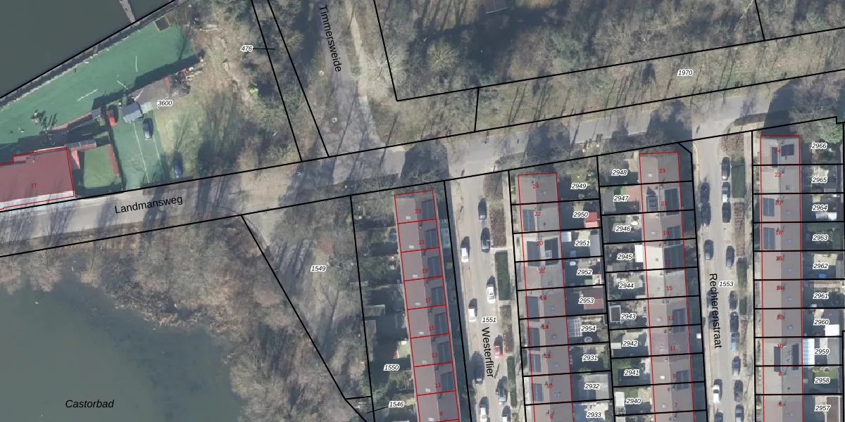 Het perceel waarop Westerflier 23 staat heeft een oppervlakte van 1950 m². Dit is een zeer groot perceel. De perceeloppervlakte wordt geregistreerd door het Kadaster. Gedetailleerde informatie over de maten van dit perceel kunt u vinden in het rapport Kadastrale kaart met maatvoering van Westerflier 23.
