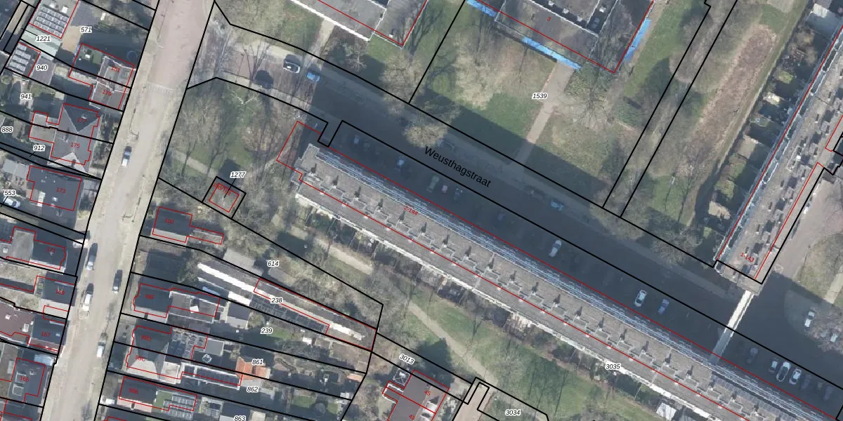 Het perceel waarop Weusthagstraat 2-G03 staat heeft een oppervlakte van 6809 m². Dit is een zeer groot perceel. De perceeloppervlakte wordt geregistreerd door het Kadaster. Gedetailleerde informatie over de maten van dit perceel kunt u vinden in het rapport Kadastrale kaart met maatvoering van Weusthagstraat 2-G03.