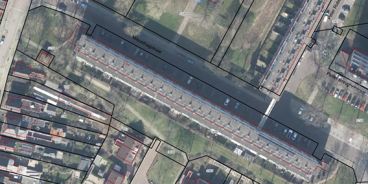 Het perceel waarop Weusthagstraat 2-G07 staat heeft een oppervlakte van 6809 m². Dit is een zeer groot perceel. De perceeloppervlakte wordt geregistreerd door het Kadaster. Gedetailleerde informatie over de maten van dit perceel kunt u vinden in het rapport Kadastrale kaart met maatvoering van Weusthagstraat 2-G07.