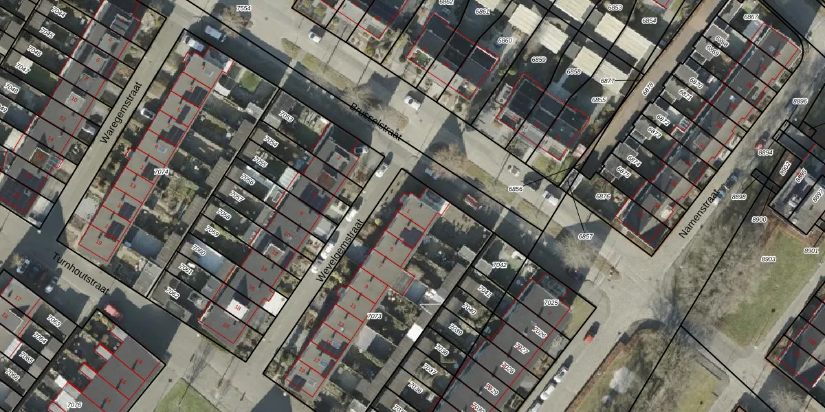 Het perceel waarop Wevelgemstraat 1 staat heeft een oppervlakte van 1596 m². Dit is een zeer groot perceel. De perceeloppervlakte wordt geregistreerd door het Kadaster. Gedetailleerde informatie over de maten van dit perceel kunt u vinden in het rapport Kadastrale kaart met maatvoering van Wevelgemstraat 1.