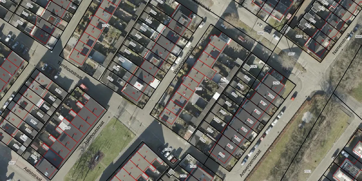 Het perceel waarop Wevelgemstraat 13 staat heeft een oppervlakte van 1596 m². Dit is een zeer groot perceel. De perceeloppervlakte wordt geregistreerd door het Kadaster. Gedetailleerde informatie over de maten van dit perceel kunt u vinden in het rapport Kadastrale kaart met maatvoering van Wevelgemstraat 13.