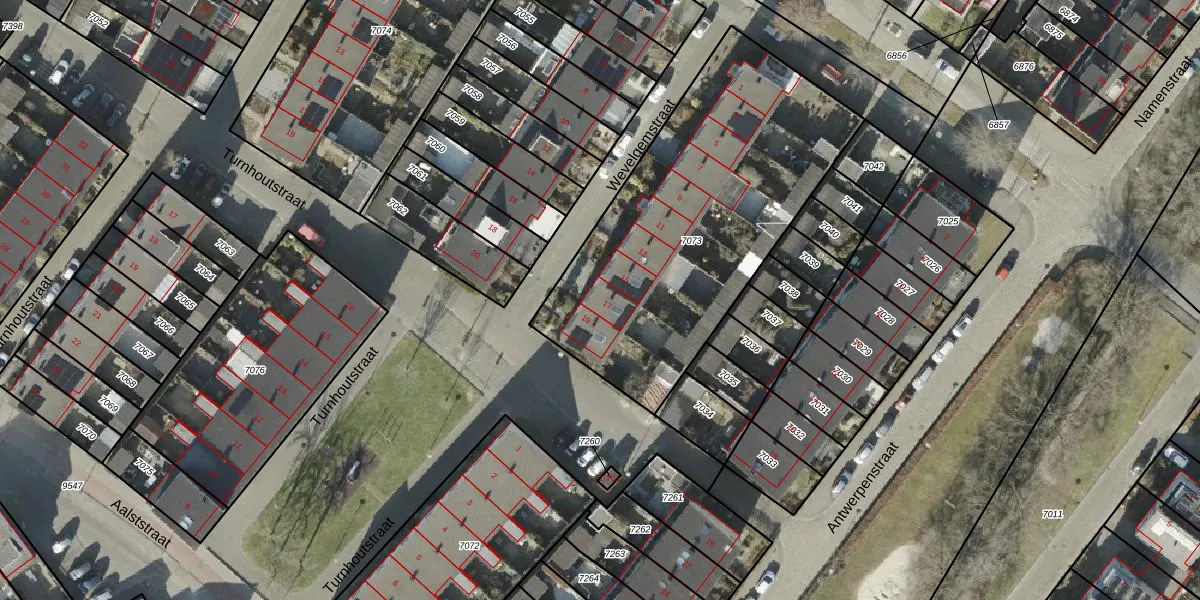 Het perceel waarop Wevelgemstraat 17 staat heeft een oppervlakte van 1596 m². Dit is een zeer groot perceel. De perceeloppervlakte wordt geregistreerd door het Kadaster. Gedetailleerde informatie over de maten van dit perceel kunt u vinden in het rapport Kadastrale kaart met maatvoering van Wevelgemstraat 17.