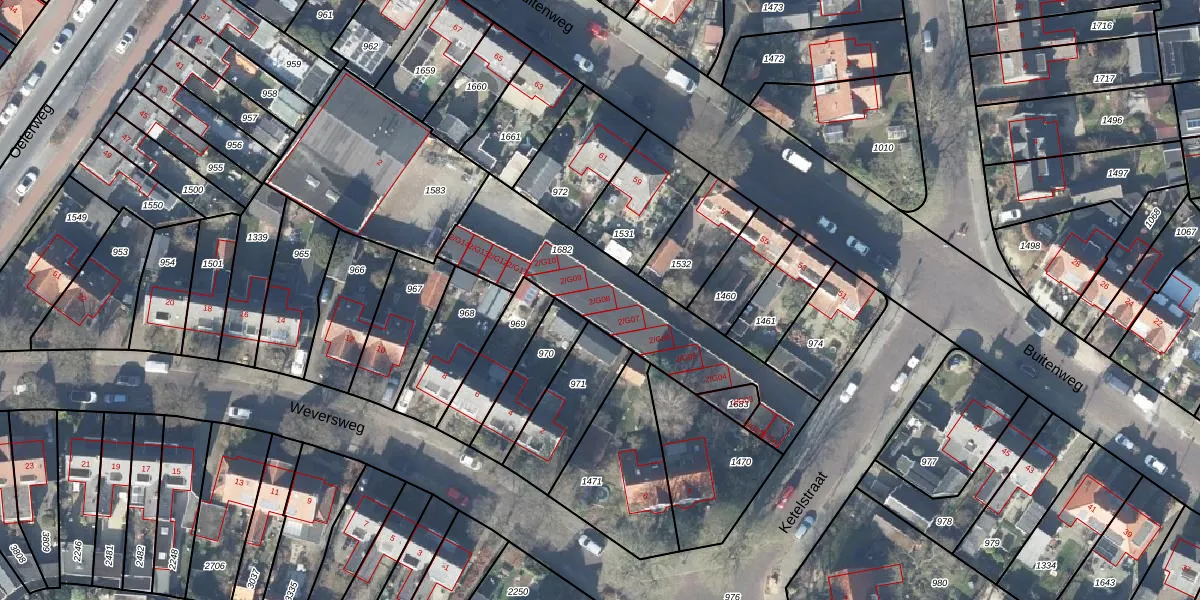 Het perceel waarop Weversweg 2-G08 staat heeft een oppervlakte van 754 m². Dit is een groot perceel. De perceeloppervlakte wordt geregistreerd door het Kadaster. Gedetailleerde informatie over de maten van dit perceel kunt u vinden in het rapport Kadastrale kaart met maatvoering van Weversweg 2-G08.