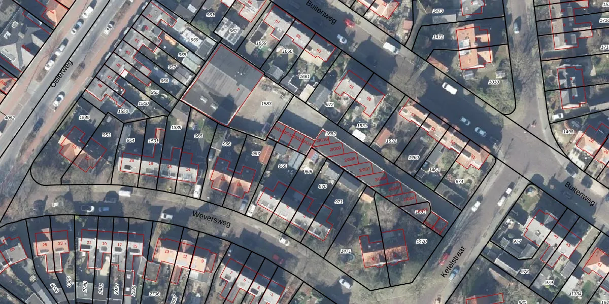 Het perceel waarop Weversweg 2-G11 staat heeft een oppervlakte van 754 m². Dit is een groot perceel. De perceeloppervlakte wordt geregistreerd door het Kadaster. Gedetailleerde informatie over de maten van dit perceel kunt u vinden in het rapport Kadastrale kaart met maatvoering van Weversweg 2-G11.