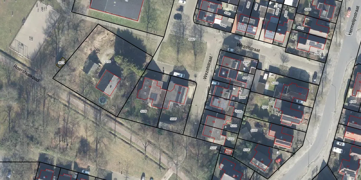 Het perceel waarop Wezelstraat 63 staat heeft een oppervlakte van 449 m². Dit is een groot perceel. De perceeloppervlakte wordt geregistreerd door het Kadaster. Gedetailleerde informatie over de maten van dit perceel kunt u vinden in het rapport Kadastrale kaart met maatvoering van Wezelstraat 63.