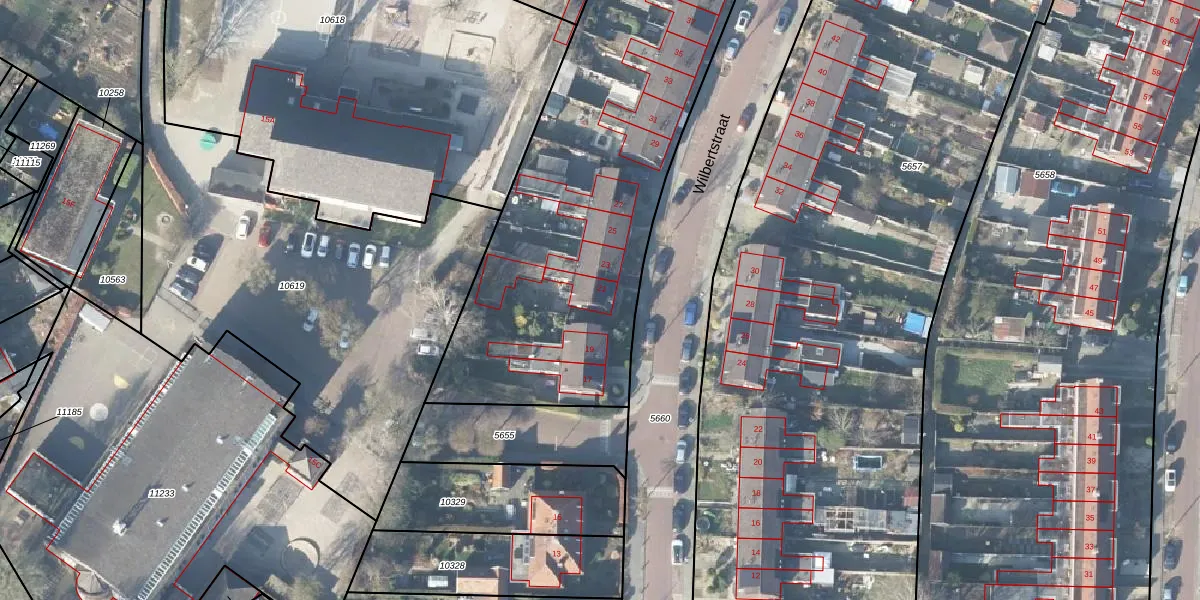 Het perceel waarop Wilbertstraat 21 staat heeft een oppervlakte van 3890 m². Dit is een zeer groot perceel. De perceeloppervlakte wordt geregistreerd door het Kadaster. Gedetailleerde informatie over de maten van dit perceel kunt u vinden in het rapport Kadastrale kaart met maatvoering van Wilbertstraat 21.
