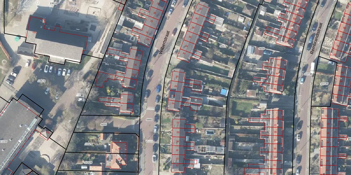Het perceel waarop Wilbertstraat 28 staat heeft een oppervlakte van 6155 m². Dit is een zeer groot perceel. De perceeloppervlakte wordt geregistreerd door het Kadaster. Gedetailleerde informatie over de maten van dit perceel kunt u vinden in het rapport Kadastrale kaart met maatvoering van Wilbertstraat 28.