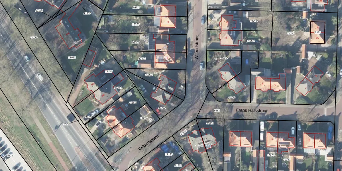 Het perceel waarop Wilbertstraat 3 staat heeft een oppervlakte van 334 m². Dit is een groot perceel. De perceeloppervlakte wordt geregistreerd door het Kadaster. Gedetailleerde informatie over de maten van dit perceel kunt u vinden in het rapport Kadastrale kaart met maatvoering van Wilbertstraat 3.