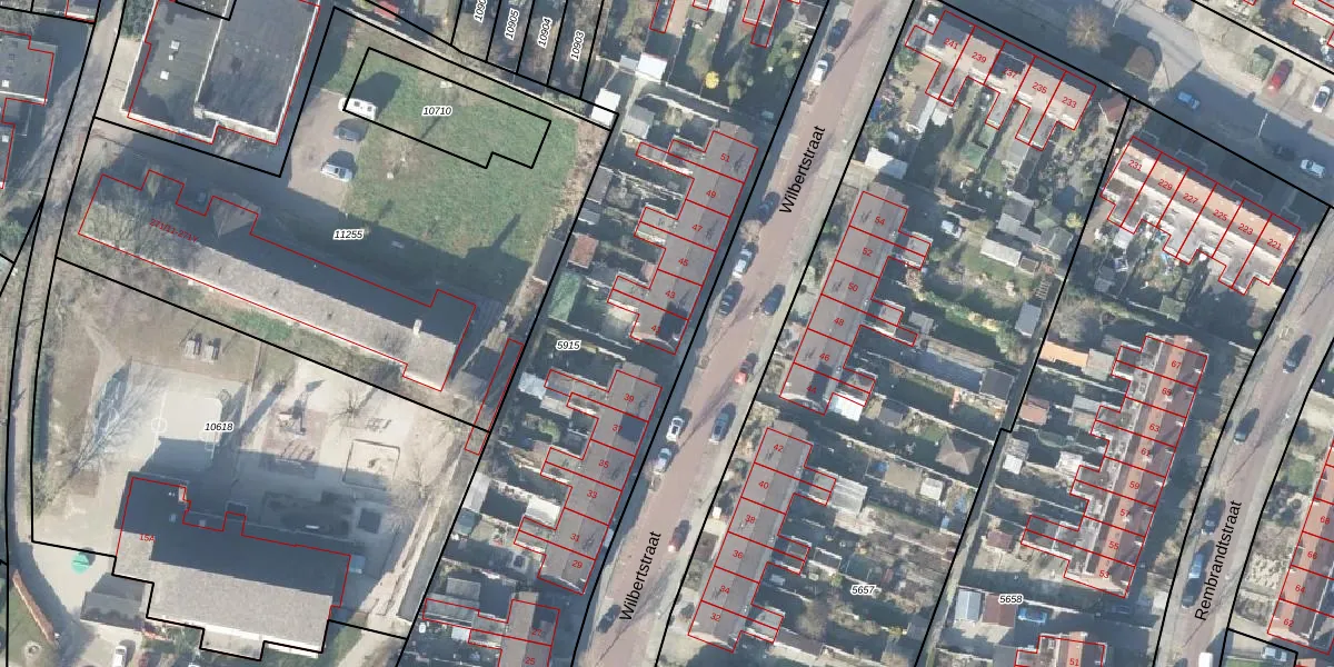 Het perceel waarop Wilbertstraat 41 staat heeft een oppervlakte van 3890 m². Dit is een zeer groot perceel. De perceeloppervlakte wordt geregistreerd door het Kadaster. Gedetailleerde informatie over de maten van dit perceel kunt u vinden in het rapport Kadastrale kaart met maatvoering van Wilbertstraat 41.