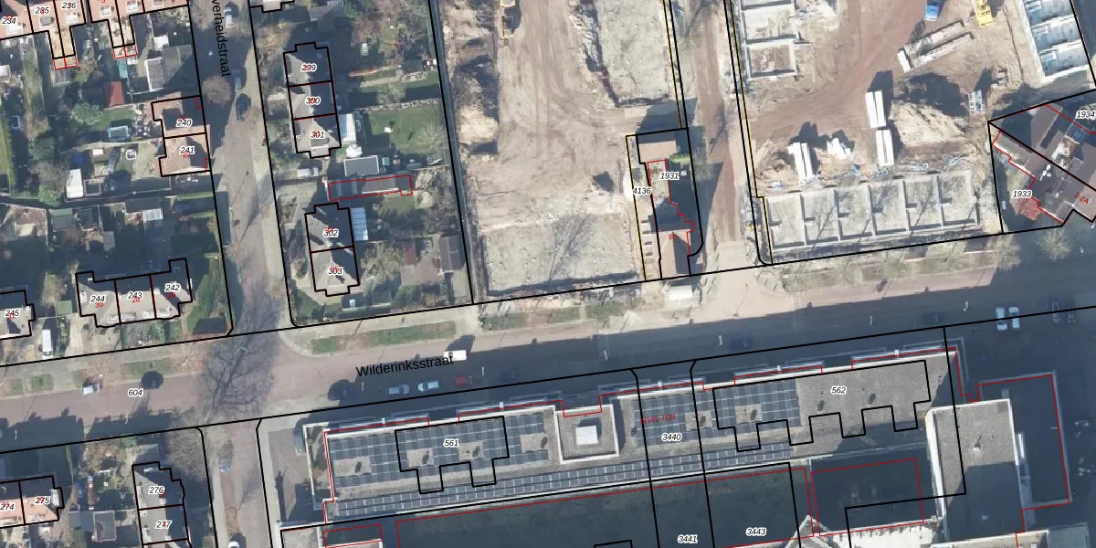 Het perceel waarop Wilderinksstraat 22 staat heeft een oppervlakte van 7279 m². Dit is een zeer groot perceel. De perceeloppervlakte wordt geregistreerd door het Kadaster. Gedetailleerde informatie over de maten van dit perceel kunt u vinden in het rapport Kadastrale kaart met maatvoering van Wilderinksstraat 22.