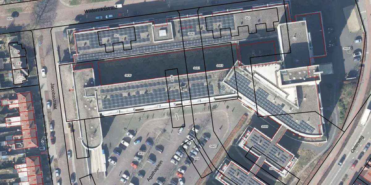Het perceel waarop Wilderinksstraat 5-63 staat heeft een oppervlakte van 1956 m². Dit is een zeer groot perceel. De perceeloppervlakte wordt geregistreerd door het Kadaster. Gedetailleerde informatie over de maten van dit perceel kunt u vinden in het rapport Kadastrale kaart met maatvoering van Wilderinksstraat 5-63.