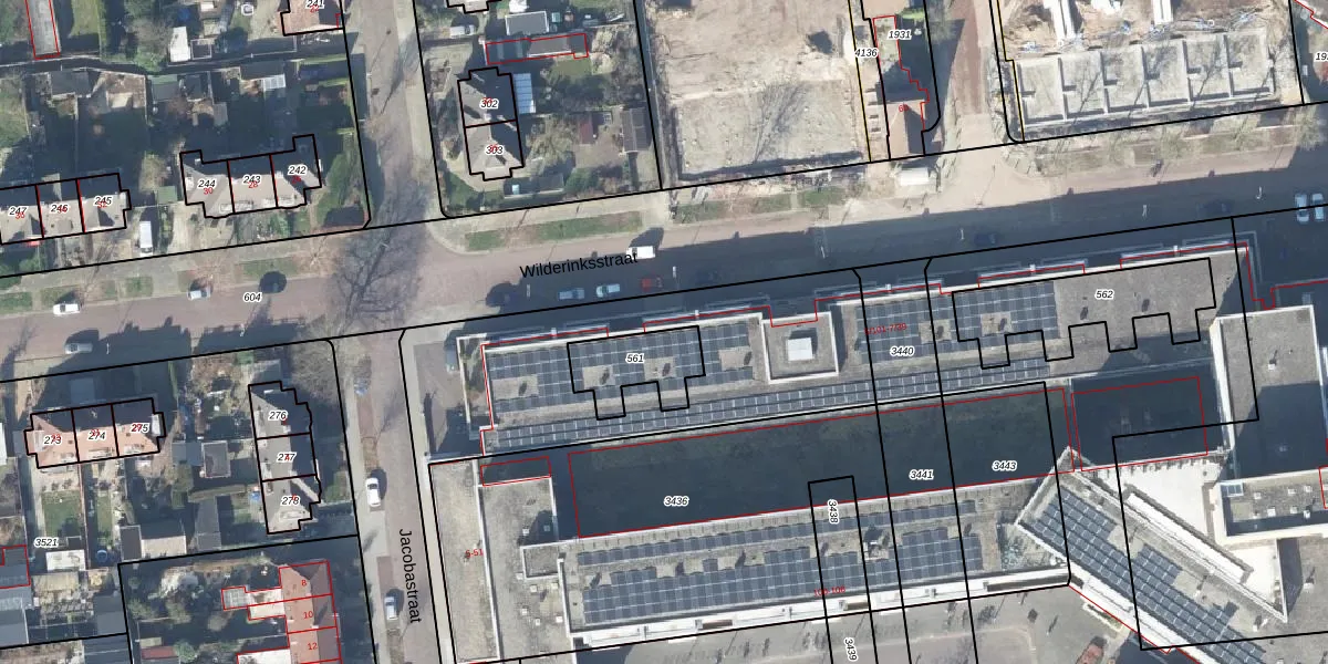 Wilderinksstraat 7-15 is gelegen op kadastraal perceel HGL01I561. Deze kadastrale aanduiding is uniek en wordt gebruikt door het Kadaster om eigendomsrechten en andere zakelijke rechten vast te leggen. Het perceel maakt onderdeel uit van de kadastrale gemeente Hengelo Overijssel.