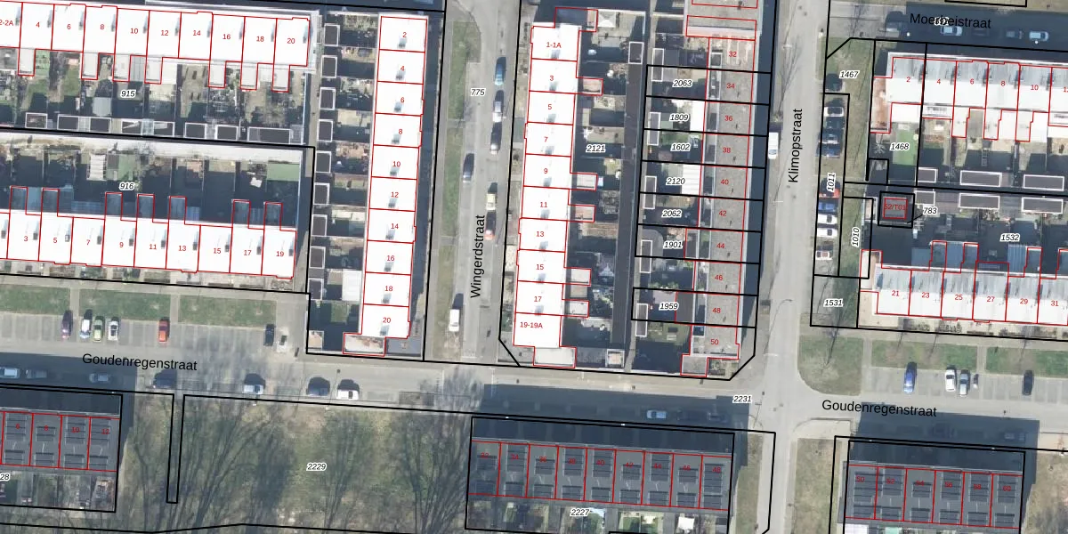 Het perceel waarop Wingerdstraat 15 staat heeft een oppervlakte van 3471 m². Dit is een zeer groot perceel. De perceeloppervlakte wordt geregistreerd door het Kadaster. Gedetailleerde informatie over de maten van dit perceel kunt u vinden in het rapport Kadastrale kaart met maatvoering van Wingerdstraat 15.