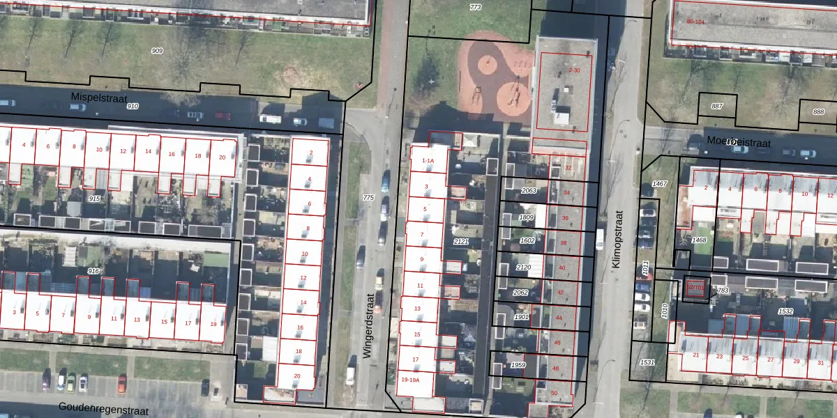 Het perceel waarop Wingerdstraat 5 staat heeft een oppervlakte van 3471 m². Dit is een zeer groot perceel. De perceeloppervlakte wordt geregistreerd door het Kadaster. Gedetailleerde informatie over de maten van dit perceel kunt u vinden in het rapport Kadastrale kaart met maatvoering van Wingerdstraat 5.