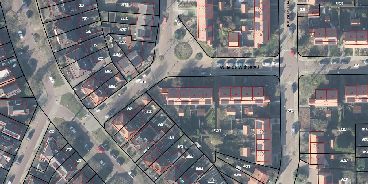 Het perceel waarop Witte de Withstraat 4 staat heeft een oppervlakte van 2670 m². Dit is een zeer groot perceel. De perceeloppervlakte wordt geregistreerd door het Kadaster. Gedetailleerde informatie over de maten van dit perceel kunt u vinden in het rapport Kadastrale kaart met maatvoering van Witte de Withstraat 4.