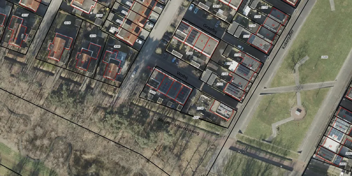 Het perceel waarop Wolbij 6 staat heeft een oppervlakte van 449 m². Dit is een groot perceel. De perceeloppervlakte wordt geregistreerd door het Kadaster. Gedetailleerde informatie over de maten van dit perceel kunt u vinden in het rapport Kadastrale kaart met maatvoering van Wolbij 6.