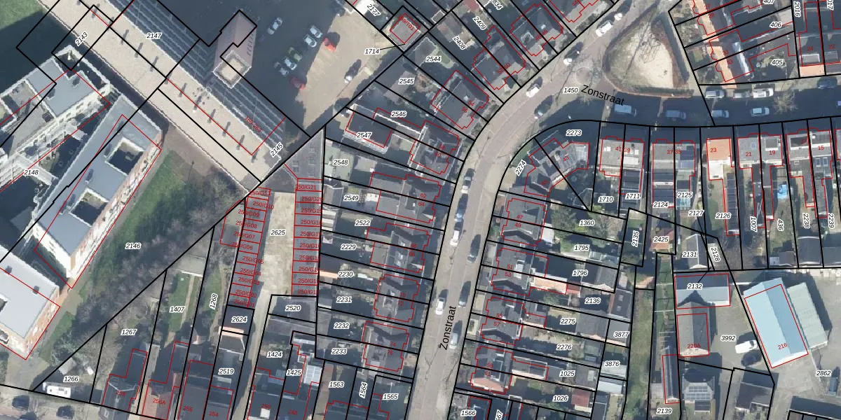 Gebruik de zoekbalk of klik op een perceel voor informatie over de adressen binnen dit perceel.