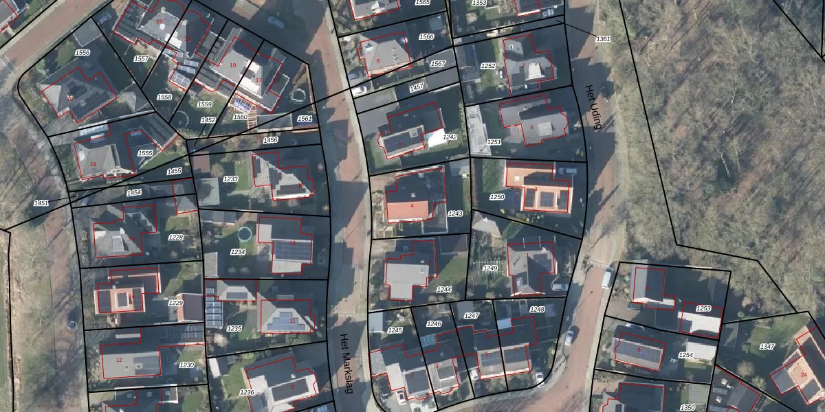 Het perceel waarop Het Markslag 4 staat heeft een oppervlakte van 411 m². Dit is een groot perceel. De perceeloppervlakte wordt geregistreerd door het Kadaster. Gedetailleerde informatie over de maten van dit perceel kunt u vinden in het rapport Kadastrale kaart met maatvoering van Het Markslag 4.