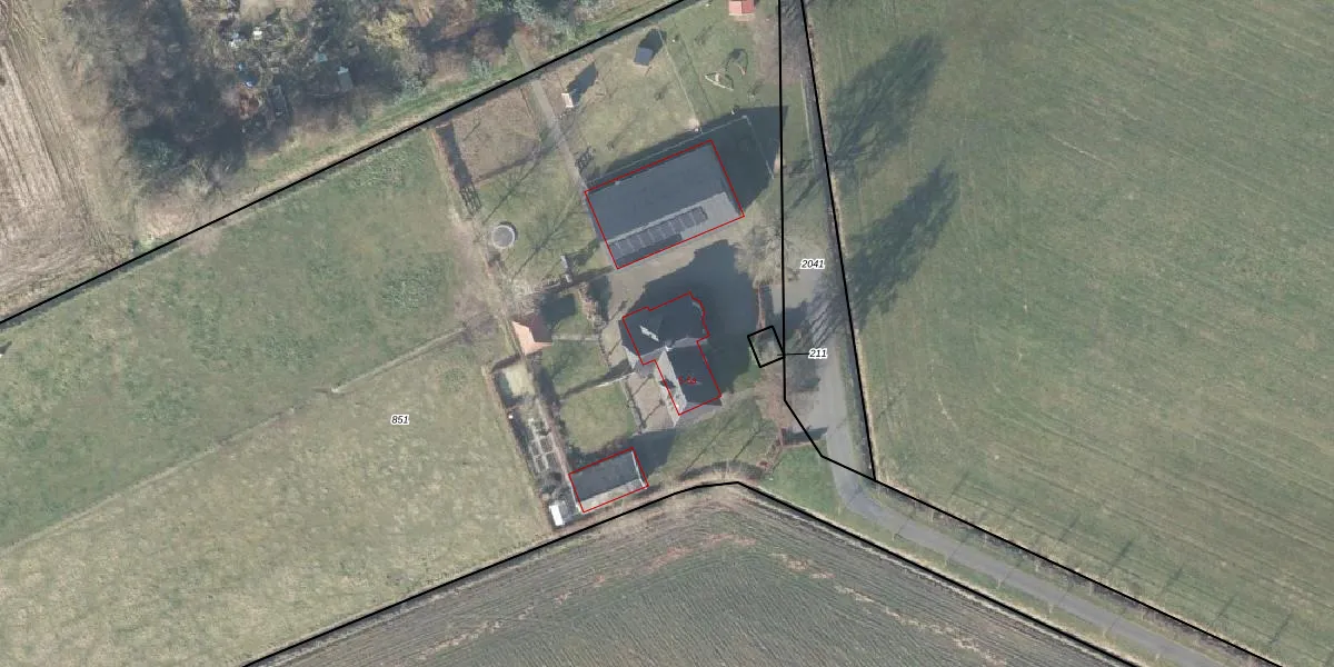 Het adres is gelegen op perceel 851 in de sectie K en de kadastrale gemeente Ambt-Delden. De kadastrale aanduiding is aldus DDN01-K-851. De oppervlakte van het perceel is 1,4 ha. Dat is groter dan gemiddeld in Ambt-Delden, waar de gemiddelde perceeloppervlakte op 1,1 ha ligt. Het kleinste perceel in de kadastrale gemeente is 0 m² groot. De grootste perceeloppervlakte is 71,7 ha. Er zijn 2 adressen aanwezig op het perceel. De huidige grenzen van het perceel zijn digitaal in de Basisregistratie Kadaster (BRK) geregistreerd op 10-02-2021.