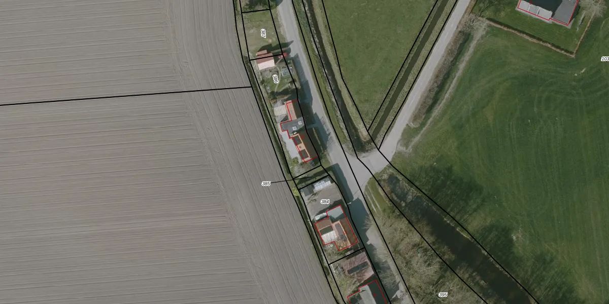 Het adres is gelegen op perceel 386 in de sectie M en de kadastrale gemeente Hontenisse. De kadastrale aanduiding is aldus HTN01-M-386. De gemiddelde perceelgrootte in Hontenisse is 1,2 ha. Dit perceel is kleiner: de perceeloppervlakte bedraagt 390 m². Het grootste perceel in de kadastrale gemeente is 18,97 km². Het kleinste perceel heeft een oppervlakte van 0 m². Dit is het enige adres dat aanwezig is op het perceel. In de Basisregistratie Kadaster (BRK) werden de grenzen van het perceel geregistreerd op 08-07-2003.