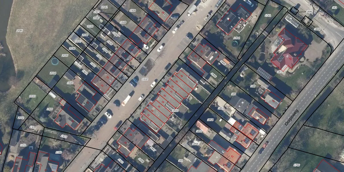 Het perceel waarop Roodeswerf 44 staat heeft een oppervlakte van 1280 m². Dit is een zeer groot perceel. De perceeloppervlakte wordt geregistreerd door het Kadaster. Gedetailleerde informatie over de maten van dit perceel kunt u vinden in het rapport Kadastrale kaart met maatvoering van Roodeswerf 44.