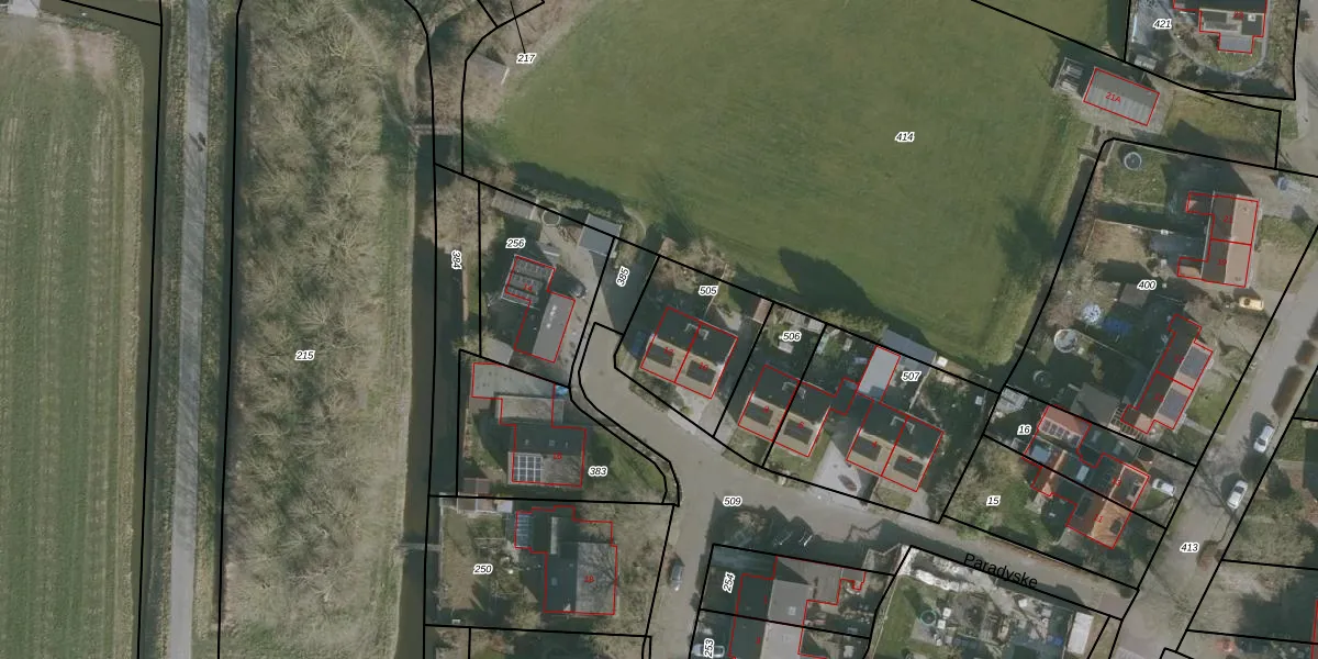 Het perceel waarop Paradyske 12 staat heeft een oppervlakte van 385 m². Dit is een groot perceel. De perceeloppervlakte wordt geregistreerd door het Kadaster. Gedetailleerde informatie over de maten van dit perceel kunt u vinden in het rapport Kadastrale kaart met maatvoering van Paradyske 12.