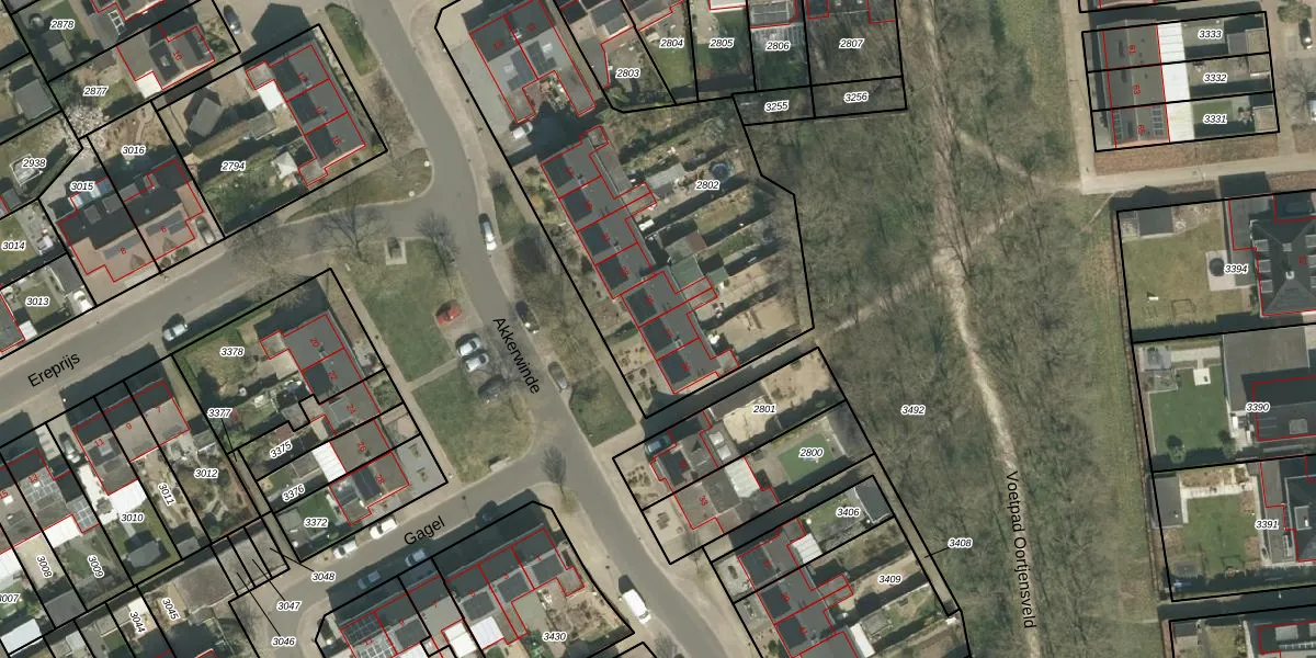 Het perceel waarop Akkerwinde 27 staat heeft een oppervlakte van 1856 m². Dit is een zeer groot perceel. De perceeloppervlakte wordt geregistreerd door het Kadaster. Gedetailleerde informatie over de maten van dit perceel kunt u vinden in het rapport Kadastrale kaart met maatvoering van Akkerwinde 27.
