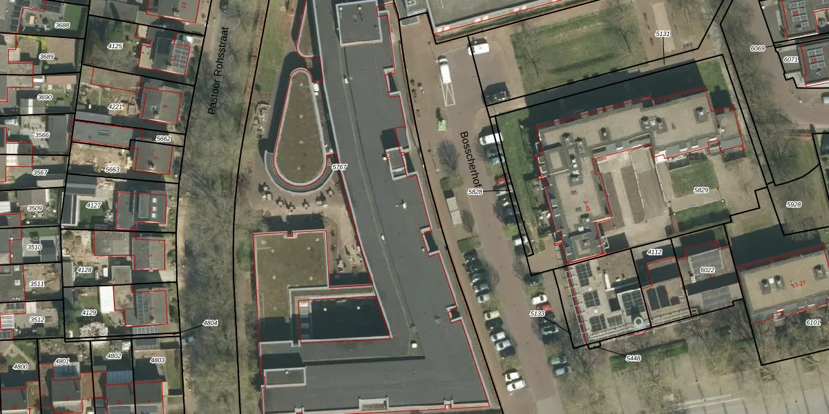 Het perceel waarop Bosscherhof 1 staat heeft een oppervlakte van 5460 m². Dit is een zeer groot perceel. De perceeloppervlakte wordt geregistreerd door het Kadaster. Gedetailleerde informatie over de maten van dit perceel kunt u vinden in het rapport Kadastrale kaart met maatvoering van Bosscherhof 1.