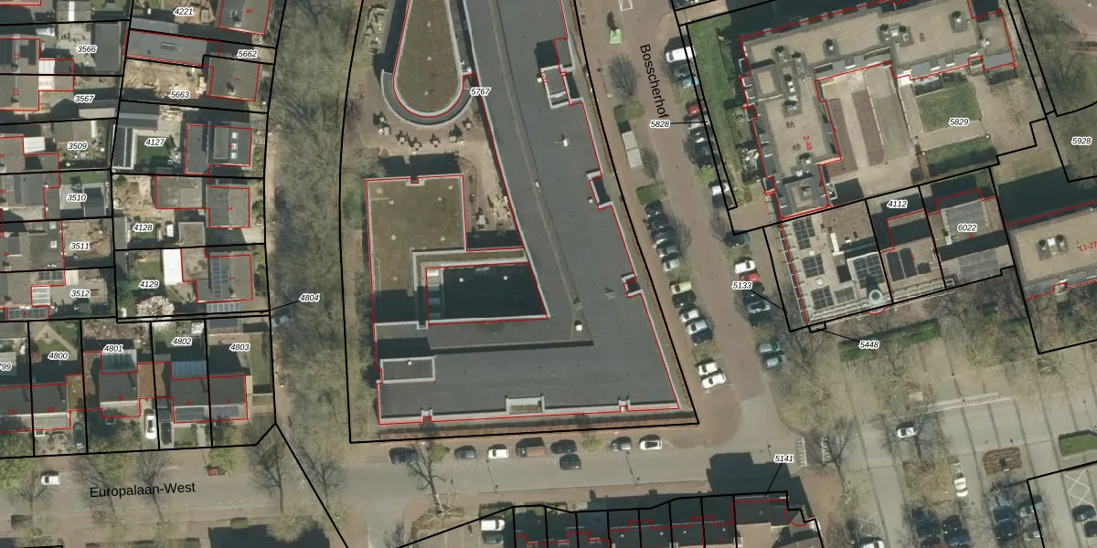 Het perceel waarop Bosscherhof 1-K111 staat heeft een oppervlakte van 5460 m². Dit is een zeer groot perceel. De perceeloppervlakte wordt geregistreerd door het Kadaster. Gedetailleerde informatie over de maten van dit perceel kunt u vinden in het rapport Kadastrale kaart met maatvoering van Bosscherhof 1-K111.