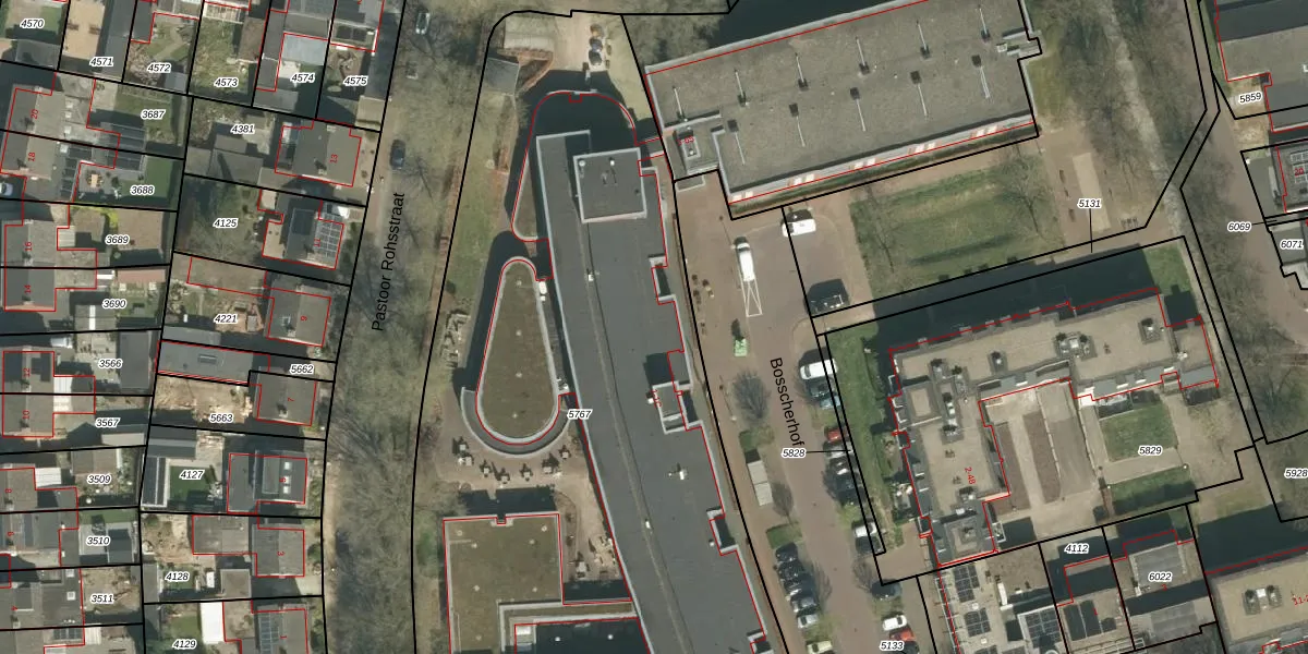 Het perceel waarop Bosscherhof 1-K129 staat heeft een oppervlakte van 5460 m². Dit is een zeer groot perceel. De perceeloppervlakte wordt geregistreerd door het Kadaster. Gedetailleerde informatie over de maten van dit perceel kunt u vinden in het rapport Kadastrale kaart met maatvoering van Bosscherhof 1-K129.