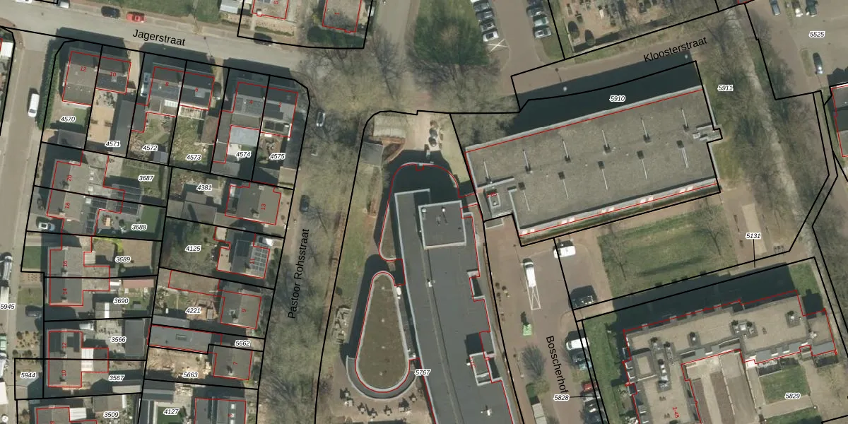 Het perceel waarop Bosscherhof 1-K201 staat heeft een oppervlakte van 5460 m². Dit is een zeer groot perceel. De perceeloppervlakte wordt geregistreerd door het Kadaster. Gedetailleerde informatie over de maten van dit perceel kunt u vinden in het rapport Kadastrale kaart met maatvoering van Bosscherhof 1-K201.
