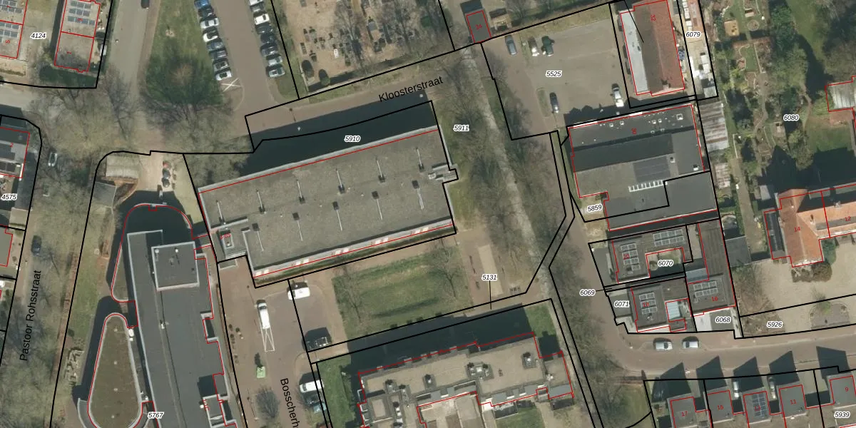 Het perceel waarop Bosscherhof 19 staat heeft een oppervlakte van 1774 m². Dit is een zeer groot perceel. De perceeloppervlakte wordt geregistreerd door het Kadaster. Gedetailleerde informatie over de maten van dit perceel kunt u vinden in het rapport Kadastrale kaart met maatvoering van Bosscherhof 19.