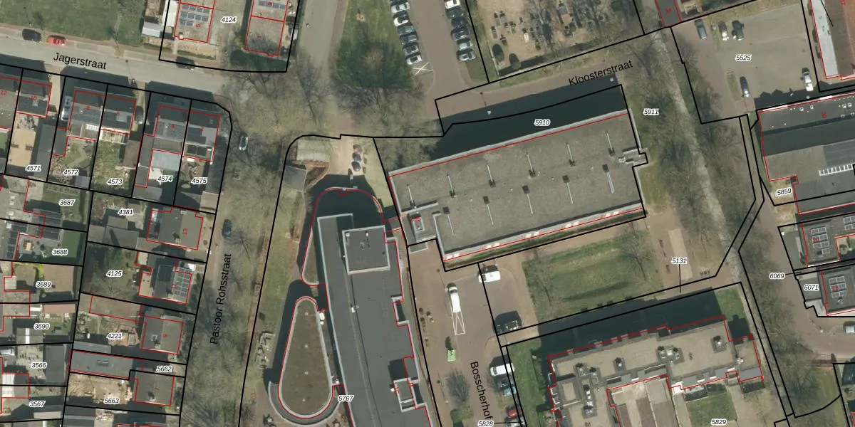 Het perceel waarop Bosscherhof 53 staat heeft een oppervlakte van 1774 m². Dit is een zeer groot perceel. De perceeloppervlakte wordt geregistreerd door het Kadaster. Gedetailleerde informatie over de maten van dit perceel kunt u vinden in het rapport Kadastrale kaart met maatvoering van Bosscherhof 53.