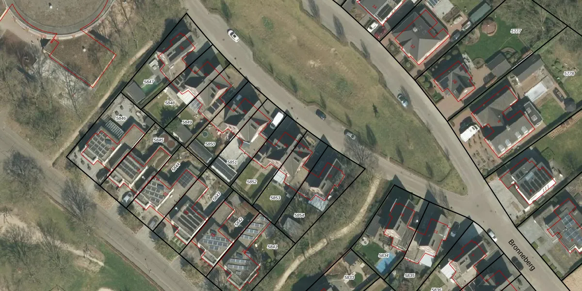 Het perceel waarop Bronneberg 19 staat heeft een oppervlakte van 300 m². Dit is een groot perceel. De perceeloppervlakte wordt geregistreerd door het Kadaster. Gedetailleerde informatie over de maten van dit perceel kunt u vinden in het rapport Kadastrale kaart met maatvoering van Bronneberg 19.