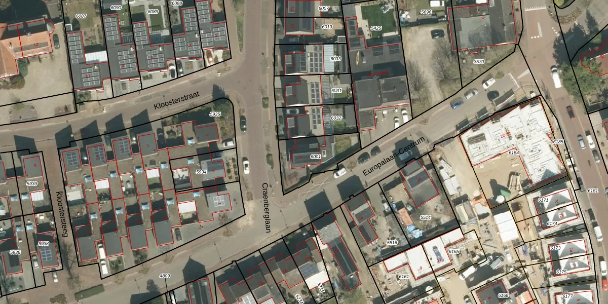 Gebruik de zoekbalk of klik op een perceel voor informatie over de adressen binnen dit perceel.
