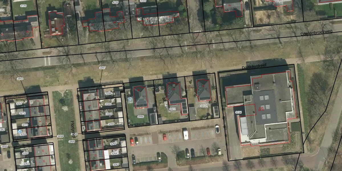 Het perceel waarop Daalderdreef 33 staat heeft een oppervlakte van 482 m². Dit is een groot perceel. De perceeloppervlakte wordt geregistreerd door het Kadaster. Gedetailleerde informatie over de maten van dit perceel kunt u vinden in het rapport Kadastrale kaart met maatvoering van Daalderdreef 33.