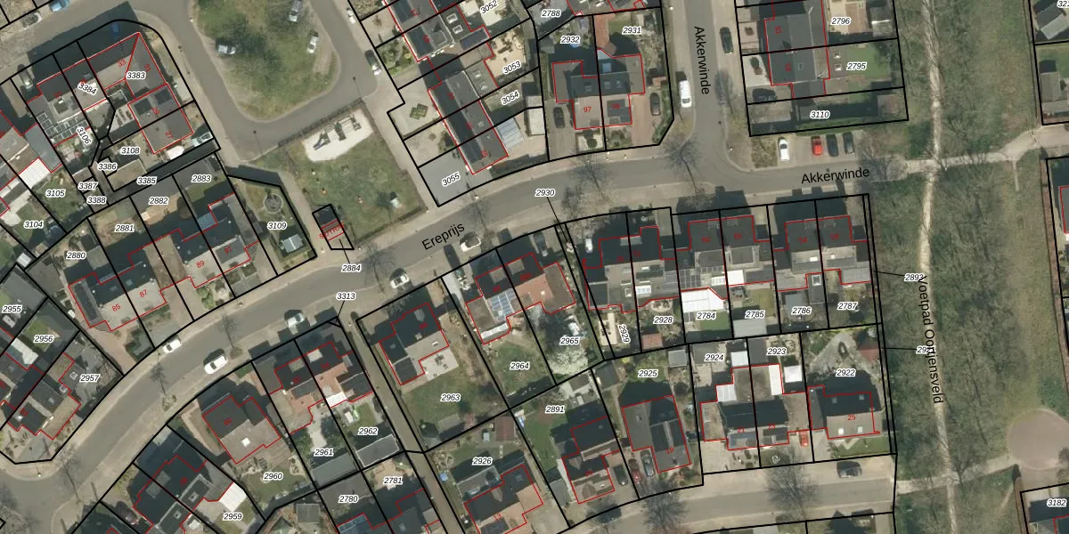 Gebruik de zoekbalk of klik op een perceel voor informatie over de adressen binnen dit perceel.