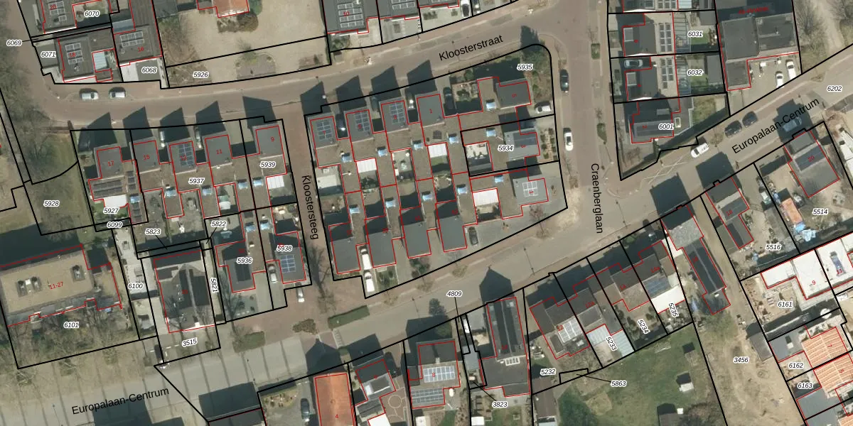 Het perceel waarop Europalaan-Centrum 41 staat heeft een oppervlakte van 2215 m². Dit is een zeer groot perceel. De perceeloppervlakte wordt geregistreerd door het Kadaster. Gedetailleerde informatie over de maten van dit perceel kunt u vinden in het rapport Kadastrale kaart met maatvoering van Europalaan-Centrum 41.